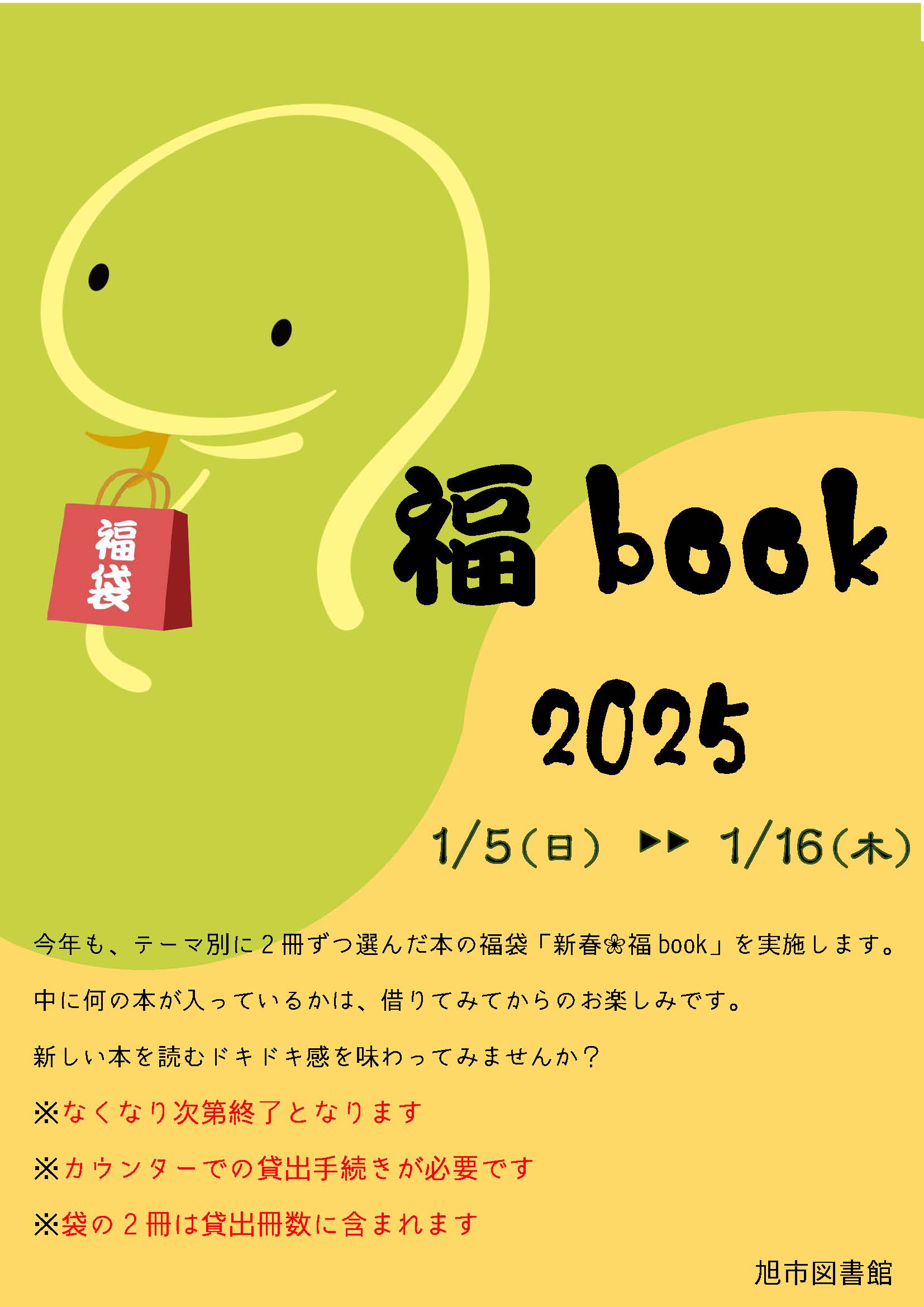 旭市図書館は、すてきな本との新しい出会いを提供し、図書館をより身近に利用していただくために、本の福袋「新春❀福book 2025」を実施します。